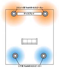 図1のように、Yoshii9をもう一組増やしてリアスピーカーとして使う方法です。 このようにすると、映画独特の臨場感や移動感も映画監督の意図通りに再現でき、2chとはまた違った愉しみ方を味わうことが出来ます。スピーカーが4本になっても、2chのときと同様にスピーカーの存在を感じさせない鳴らし方が可能です。ですから、まさに映画の1シーンの中に飛び込んでしまったかのような感覚を体験することが出来ます。 この構成でサラウンドを愉しむためには、Yoshii9を2セットやDVDプレーヤー、テレビモニターの他にも、アナログマルチ出力のついたAVアンプが必要になります。 ちょっと贅沢かも知れませんが、Yoshii9のサービスエリアの広さを生かして、そこにいる一全員が映画館並み、あるいはそれ以上の音質と、驚くような臨場感で映画を愉しむことが出来ます。もちろんデジタル放送の5.1ch音声もこの構成でお愉しみいただけます。 また5.1chの従来スピーカーを使った構成は図2のようになりますが、定位の良いYoshii9を利用すれば、置き場所に困るセンタースピーカーも不要になります。2本のリアスピーカーで充分な空間を演出してくれるので、図1のようにスピーカー構成も実にスッキリした形になります。 などと、タイムドメイン社のHPをベースに説明しましたが、実は恥ずかしながら私個人はこのYoshii9/2セット構成での音を聞いたことがまだありません。 そこで担当者の方に1セットの場合とどれくらいの差があるのかを質問してみました。音の違い、臨場感の違いを言葉で表現するのは難しいことですが、答えは「miniとYoshii9の音の差くらいはある」とのことでした。 これを聞いて妙に納得するものがありました。 なにかと言いますと、まずはminiとかlightをずっと聴いていると、価格以上の素晴らしい音が出ているのを実感できます。ところがYoshii9と聞き比べてしまうと如実に差を感じてしまう。これは試聴会に来ていただいたお客様ともよく話すのですが、比較してしまうとYoshii9は余裕で鳴っているけれど、miniとかlightは一生懸命鳴っているという感じを受けてしまいます。 つまりはYoshii9を1セットと2セットの違いが「miniとYoshii9の音の差くらいはある」ということなら、所詮聴いてみなければわからないことではありますが、期待値はとっても高いということではないかと思っています。 |
